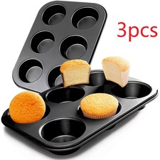 3 PCS Pack 6 Cups Cake Muffin Pan Non-Stick Bakeware Diameter Cups Carbon Steel!