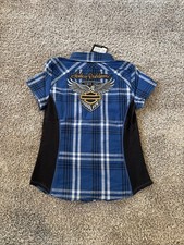 NWT NEW Harley Davidson Shirt Women's Small Blue Plaid Snap Button HD Patches